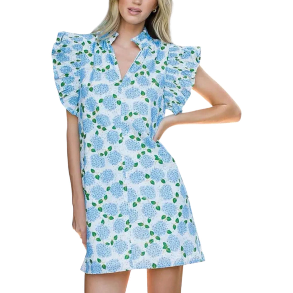 Blue Hydrangea Print Dress