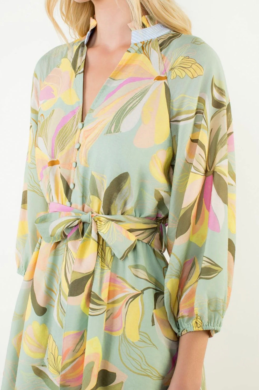This charming floral button-down dress, features a flattering V-neckline and soft pastel tones. Perfect for spring and summer events. The classic floral pattern adds a feminine touch that transitions beautifully from day to evening. A must have for your spring/summer wardrobe.