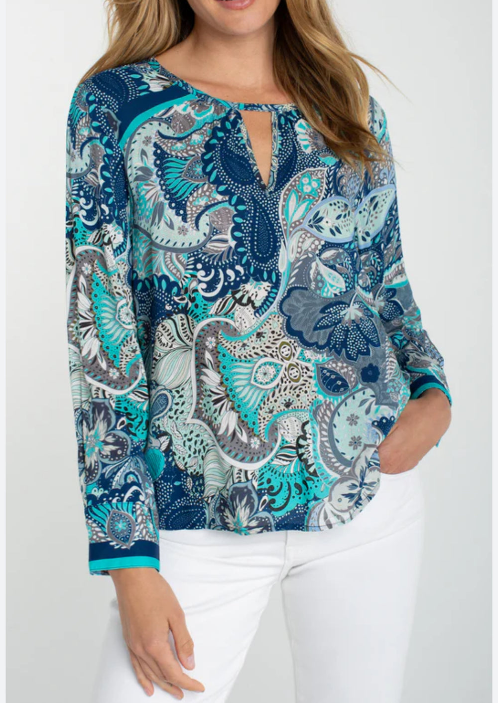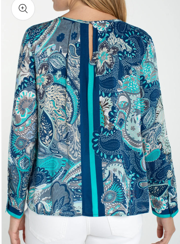 Liverpool Long Sleeve Woven Top w/ Keyhole Neckline